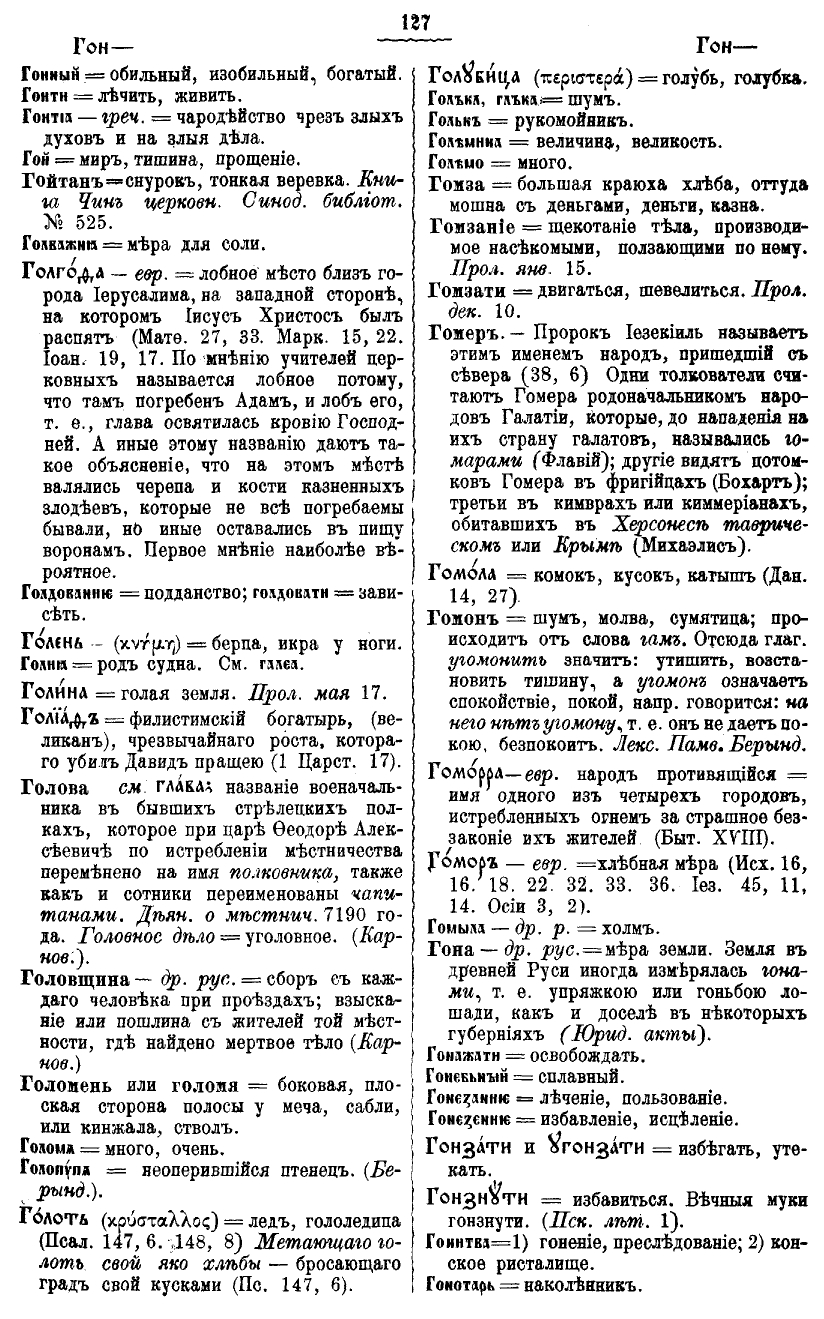 — др. рус. = мера земли. Земля в древней Руси иногда измерялась гонами, т.е. упряжкой или гоньбой лошади, как и доселе в некоторых губерниях (Юрид. акты).