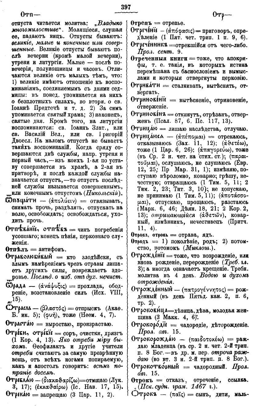 — (παῖς) = сын, дитя, мальчик, отрок, юноша, ученик; служитель при князе или царе. В Быт.9:25-26 читается отрок раб - παῖς οἰϰέτης, ниже в 27 ст. только раб, как и в русской Библии (= евр. т.). Слово παῖς у LXX в кн. Бытия гораздо чаще соответствует евр. слову Эвед, чем слово οἰϰέτης. Вероятно, первоначально было только παῖς, а слово οἰϰέτης, стояло на поле рукописей, потом вошло и в самый текст, не вытеснив собою слова παῖς. По значению слова παῖς и οἰϰέτης, почти тождественны. Славянские переводчики παῖς, понимая в смысле указания на возраст Ханаана, перевели его словом отрок, в 27 же ст. слово παῖς переведено раб. (Ср. XXV, 55). (В. Лебед.).