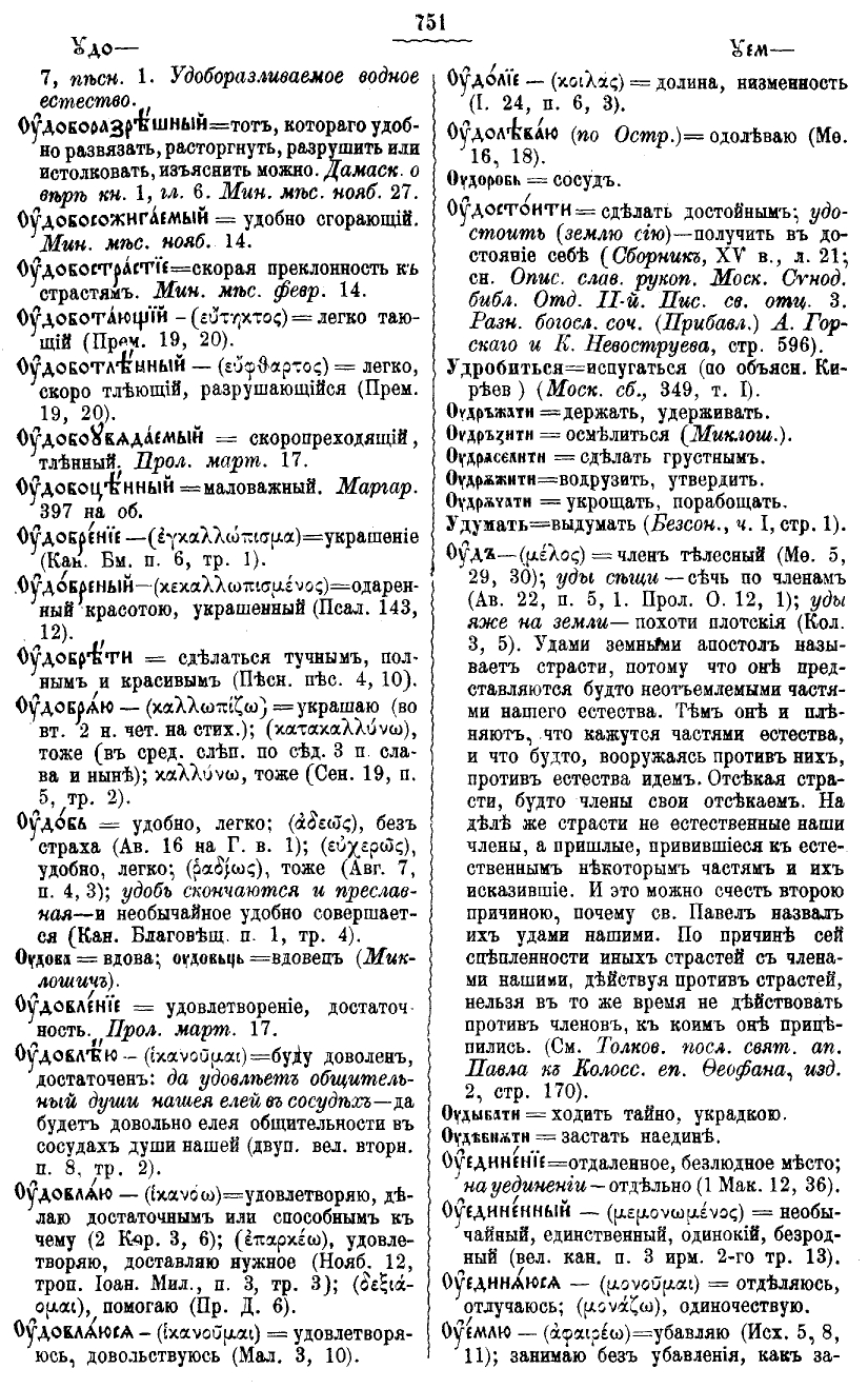= удобно, легко; (?????), без страха (Ав. 16 на Г. в. 1); (?????), удобно, легко; (?????), тоже (Авг. 7, п. 4, 3); удобь скончаются и преславная – и необычайное удобно совершается (Кан. Благовещ. п. 1, тр. 4).