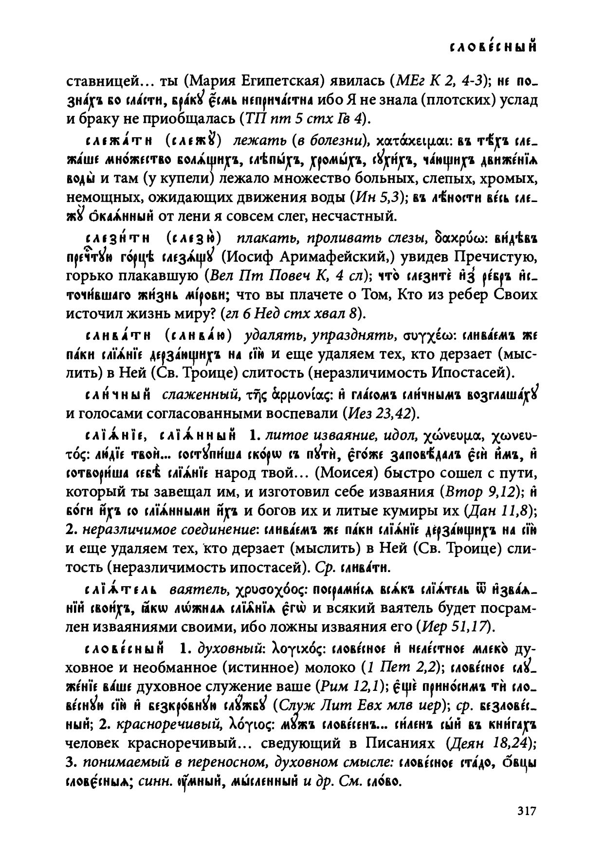 1.литое изваяние, идол, χώνευμα, χωνευτός: лю́дїе твоѝ… состꙋпи́ша ско́рѡ съ пꙋтѝ, є̂го́же заповѣ́далъ є̂сѝ имъ, и̂ сотвори́ша себѣ̀ слїѧ́нїе народ твой… (Моисея) быстро сошел с пути, который ты завещал им, и изготовил себе изваяния (Втор.9:12); и̂ бо́ги ихъ со слїѧ́нными ихъ и богов их и литые кумиры их (Дан.11:8); 2.неразличимое соединение: слива́емъ же па́ки слїѧ́нїе дерза́ющих на сїю̀ и еще удаляем тех, кто дерзает (мыслить) в Ней (Св. Троице) слитость (неразличимость ипостасей). Ср. слива́ти.