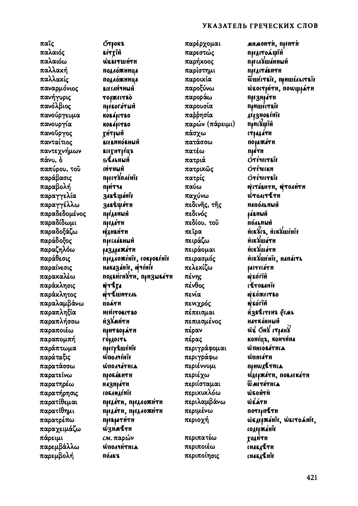 Указатель греческих слов и их соответствий