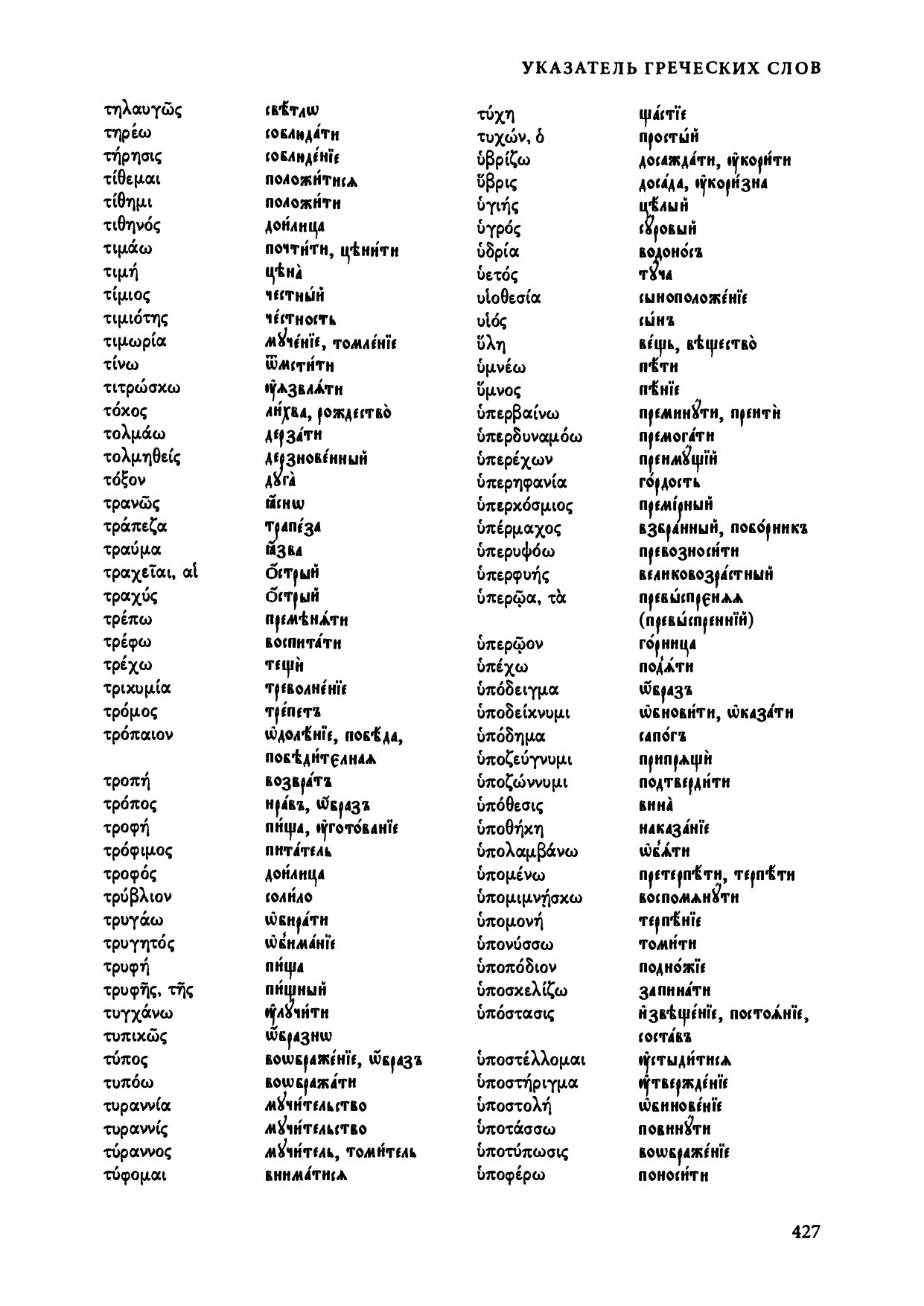 Указатель греческих слов и их соответствий