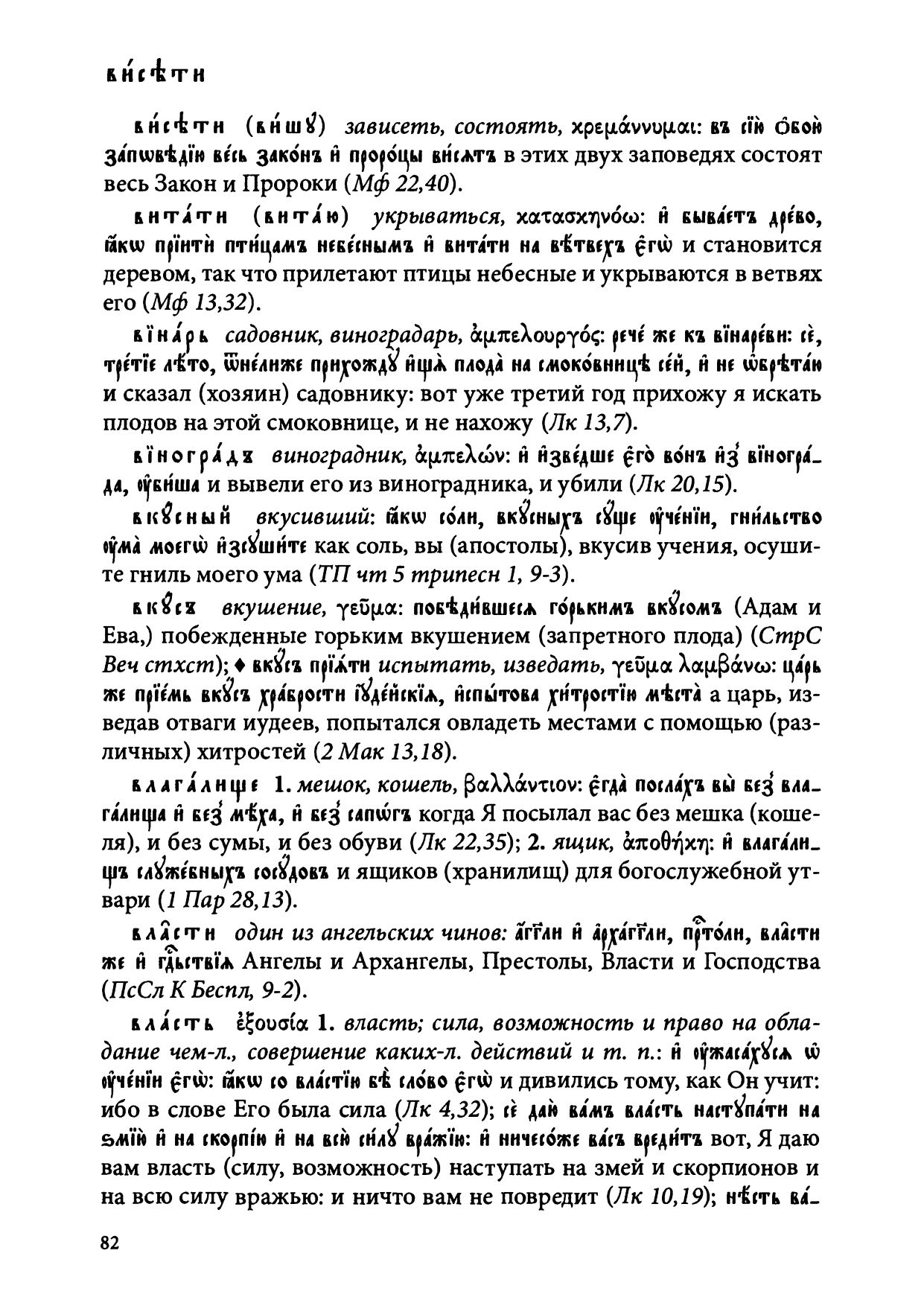 зависеть, состоять, κρεμάννυμαι: въ сїю̀ ѻ҆бою̀ за́пѡвѣдїю ве́сь зако́нъ и҆ проро́цы ви́сѧтъ в этих двух заповедях состоят весь Закон и Пророки (Мф.22:40).